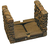 | Mentre fra la COMPAGNIA serpeggia il sospetto, KAIBAN, si dedica allo studio dell’avallamento del terreno situato a circa due passi prima del TERZO TRIVIO, superato il quale, poco più avanti vi sono i tre simboli scalfiti sul muro e placcati in ferro: alla pressione mossa dal LADRO, un cigolio sinistro riecheggia per il corridoio tutto che, alto almeno tre passi, lascia sfilare un’eco tetra. Analizzando la superficie dell’avallamento, il VAMPIRO, nota come esso sia composto in realtà di legno e non di pietra e come minuscoli e dapprima inosservati, ai bordi delle due lastre che compongono l’avallamento, siano situati due cardini. |